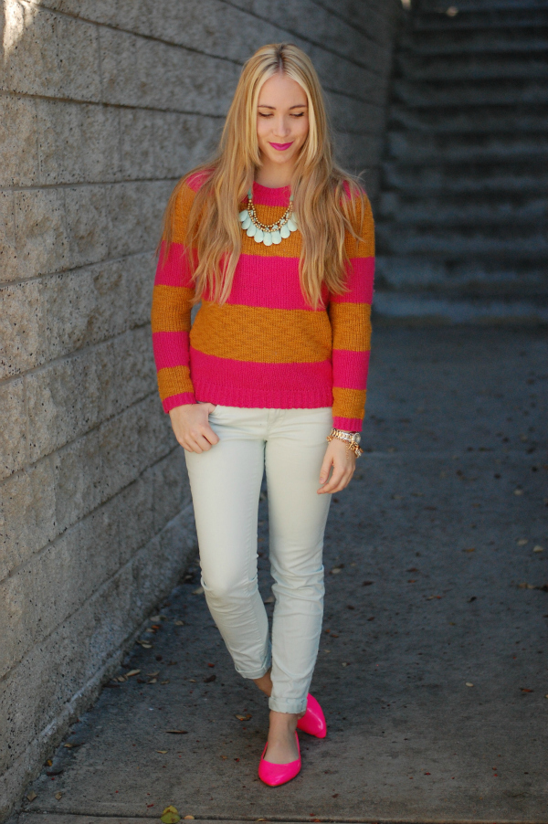 Sweater: LOFT (on sale!) Pants: LOFT (on sale!) Necklace: Gift (similar). Shoes: Boutique (similar). Watch: Fossil.